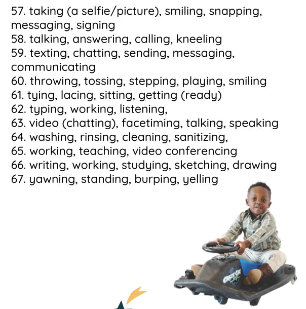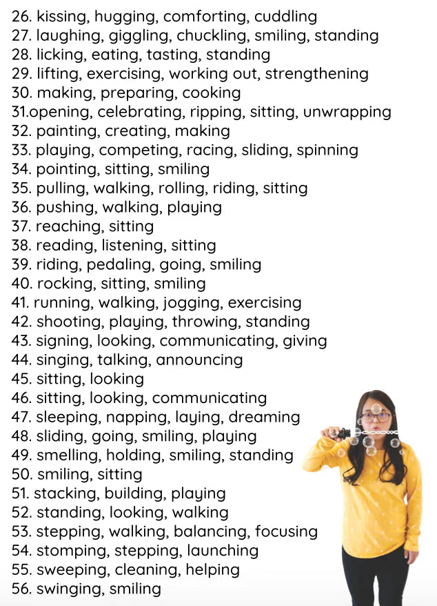 Educational Goals: These action cards are an invaluable asset for teaching various language concepts, including verb tenses, pronoun usage, and sentence expansion. They are specifically designed to improve both receptive and expressive language skills.