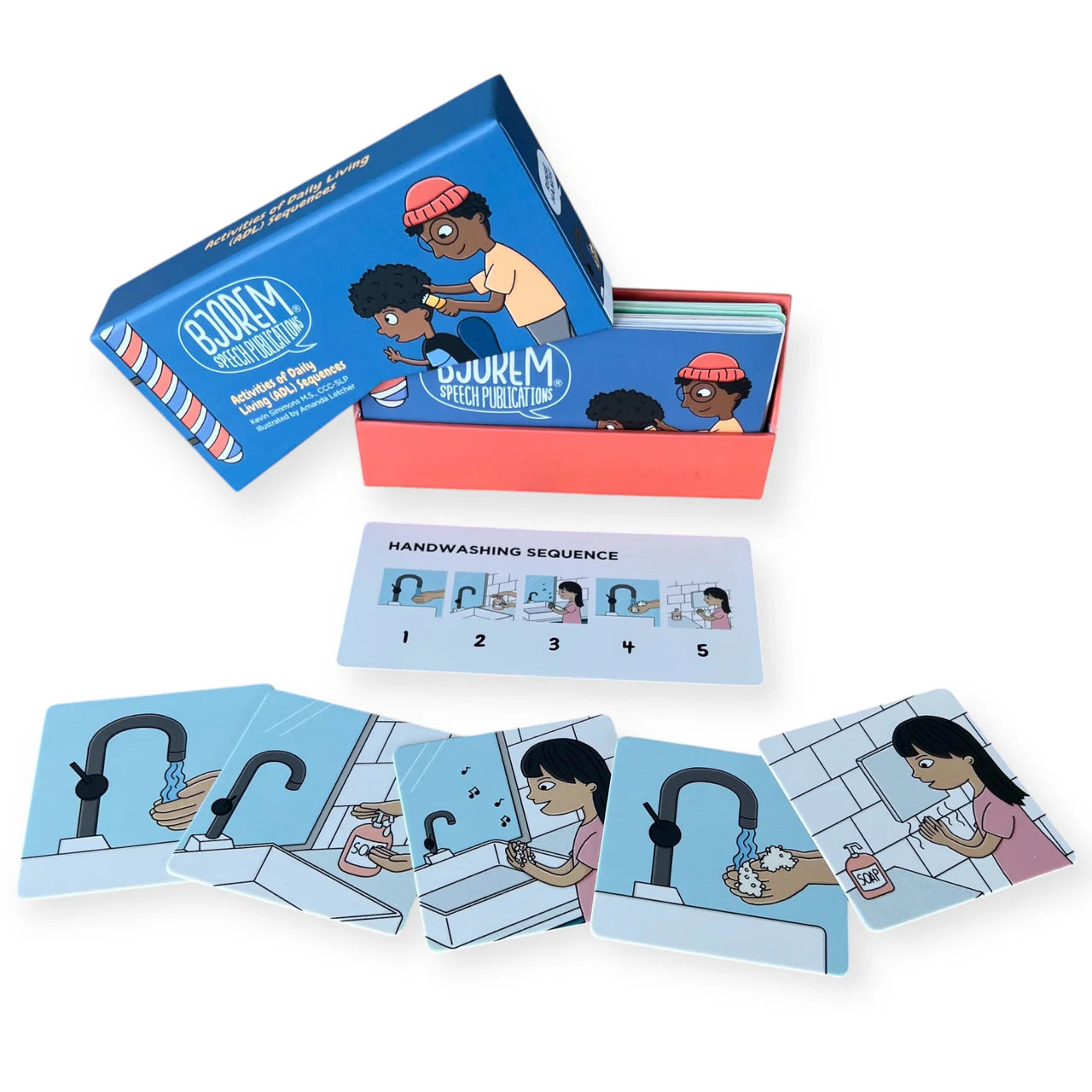 The My Routines Sequencing Deck is a hands-on learning tool designed to guide children through familiar daily routines while boosting cognitive development. Featuring 5-step sequences for common activities—like getting a haircut (boy and girl options), hand washing, getting dressed, and brushing teeth—this deck helps children learn essential life skills in a fun, structured way.