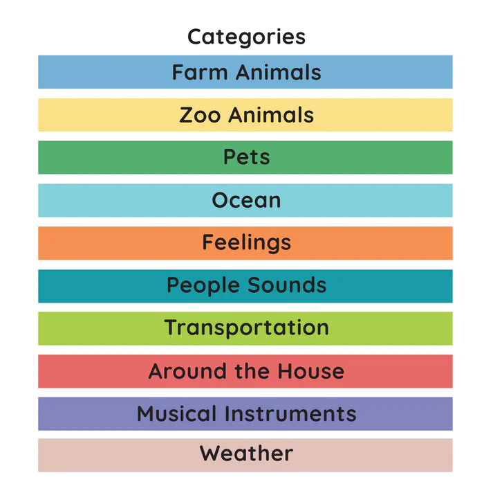 Toddlers and preschoolers will be thrilled to learn, listen, and imitate sounds like "moo! beep beep! woof! Vroom!". These sounds often become some of the first speech sounds your child will intentionally make, marking an exciting stage in their developmental journey.